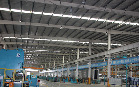 工業(yè)風(fēng)扇是一款廣泛應(yīng)用于工業(yè)廠房、物流倉儲(chǔ)、候車室、展覽館、體育館、商超等等高大空間,作為空間通風(fēng),人員降溫的一種常見工業(yè)用機(jī)器。比起傳統(tǒng)的暖通空調(diào)和小型的高速風(fēng)機(jī),它有無可比擬的應(yīng)用優(yōu)勢,工業(yè)大風(fēng)扇耗電小,風(fēng)量大,單臺(tái)覆蓋面積可達(dá)1200平方米,堪稱高大空間通風(fēng)降溫的完美解決方案。