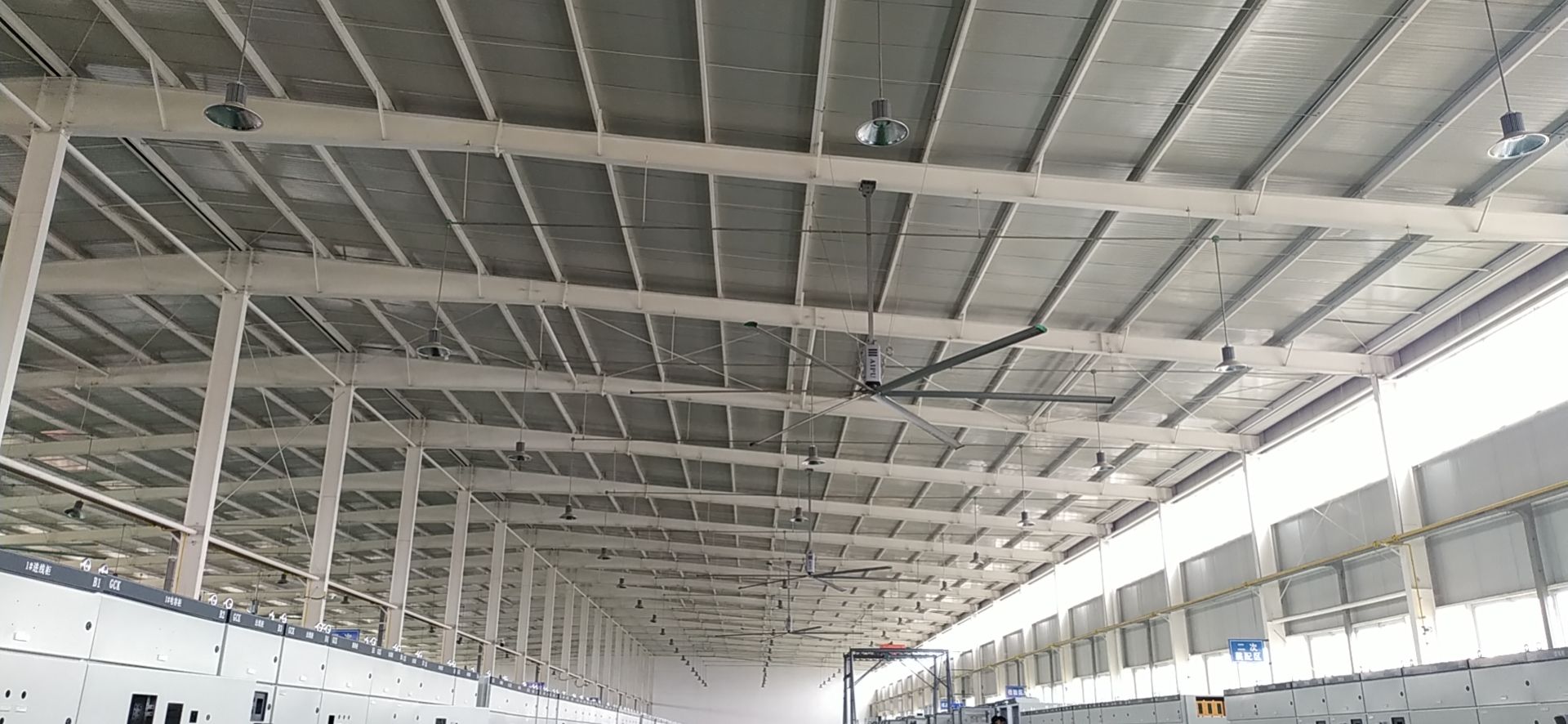 工業(yè)風(fēng)扇是一款廣泛應(yīng)用于工業(yè)廠房、物流倉儲、候車室、展覽館、體育館、商超等等高大空間,作為空間通風(fēng),人員降溫的一種常見工業(yè)用機(jī)器。比起傳統(tǒng)的暖通空調(diào)和小型的高速風(fēng)機(jī),它有無可比擬的應(yīng)用優(yōu)勢,工業(yè)大風(fēng)扇耗電小,風(fēng)量大,單臺覆蓋面積可達(dá)1200平方米,堪稱高大空間通風(fēng)降溫的完美解決方案。