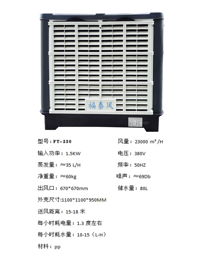2、冷風(fēng)機每100-150平方米面積安裝一臺,每小時僅需1度電。