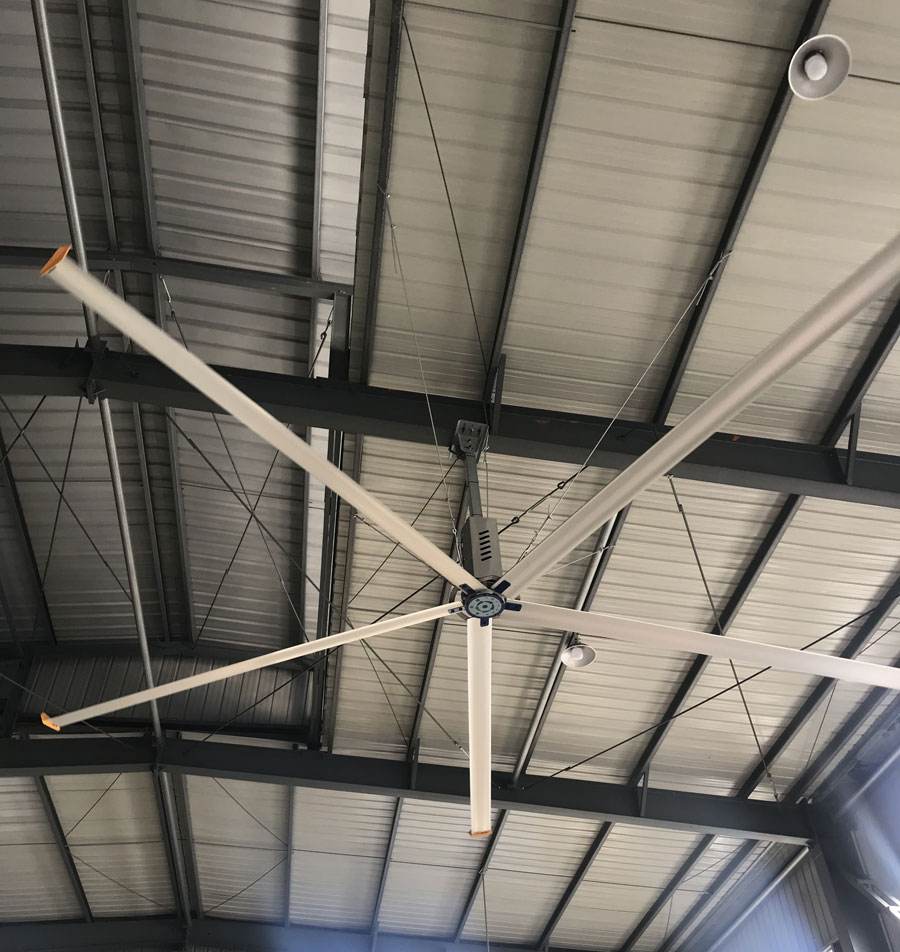 工業(yè)風(fēng)扇是一款廣泛應(yīng)用于工業(yè)廠房、物流倉儲、候車室、展覽館、體育館、商超等等高大空間,作為空間通風(fēng),人員降溫的一種常見工業(yè)用機(jī)器。比起傳統(tǒng)的暖通空調(diào)和小型的高速風(fēng)機(jī),它有無可比擬的應(yīng)用優(yōu)勢,工業(yè)大風(fēng)扇耗電小,風(fēng)量大,單臺覆蓋面積可達(dá)1200平方米,堪稱高大空間通風(fēng)降溫的完美解決方案。